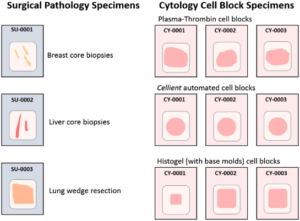 نمونههای پاتولوژیک، نمونههایی از بافت یا مایعات بدن هستند که برای بررسی توسط یک پاتولوژیست جهت تشخیص یا نظارت بر شرایط پزشکی جمعآوری میشوند. این نمونهها میتوانند از بیوپسیهای بافت کوچک تا نمونههای جراحی بزرگتر یا حتی مایعات بدن مانند خون یا ادرار متغیر باشند.